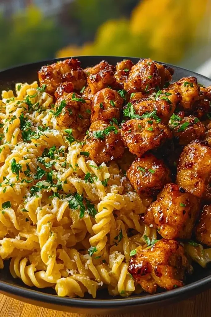 Craving a restaurant-style dinner without the fuss? This Garlic Butter Chicken Bites & Spicy Cajun Alfredo Twisted Pasta is the perfect combo of bold flavor and creamy indulgence. Golden seared chicken coated in garlic butter is served alongside pasta tossed in a spicy Cajun Alfredo sauce—making this the ultimate quick dinner, easy weeknight recipe, or comfort food idea. It’s packed with protein, easy to adapt, and looks as good as it tastes. Whether you're in need of dinner ideas, easy recipes, or a new pasta favorite, this dish checks all the boxes.