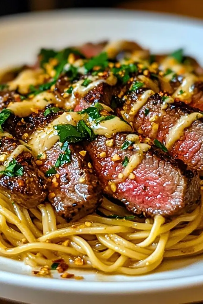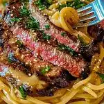 A quick and luxurious noodle dish featuring tender steak, a silky garlic butter sauce, and perfectly cooked noodles. Garlic Butter Steak Lightning Noodles is the perfect meal when you want bold flavors and comforting textures—all ready in about 30 minutes.