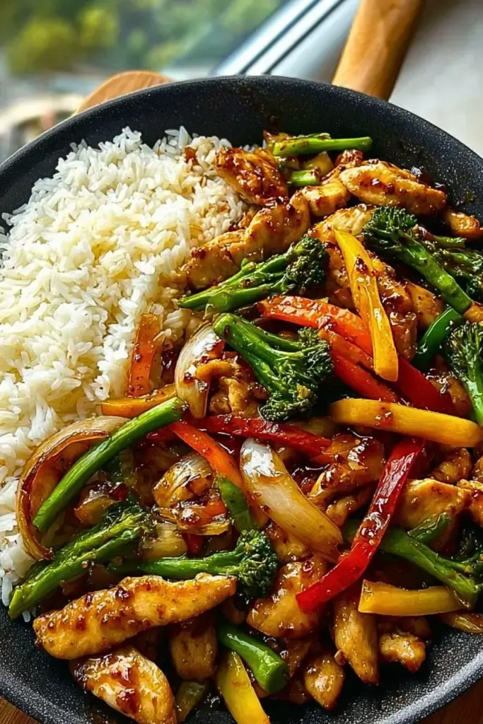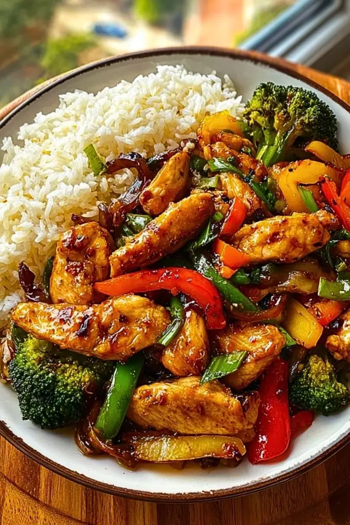 Looking for a quick dinner idea that’s full of flavor and healthier than takeout? This Garlic Chicken Stir-Fry with Rice delivers juicy strips of chicken, crisp vegetables, and a garlicky soy-based sauce, all in under 30 minutes. It’s perfect for weeknight meals, meal prep lunches, or when you just want something satisfying without the hassle. With its balance of lean protein, colorful veggies, and fluffy rice, it checks all the boxes for an easy recipe, healthy stir-fry, and go-to food idea the whole family will love.