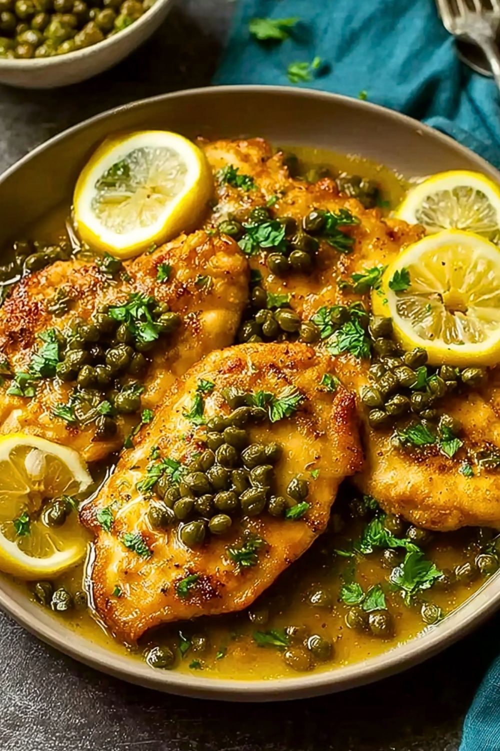 Once done, taste the sauce and adjust seasoning if needed. Garnish with freshly chopped parsley and serve the chicken with generous spoonfuls of the lemony caper sauce over top.