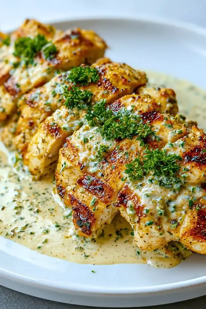 Remove the chicken from the grill and let it rest for 5 minutes to retain juiciness. Garnish with chopped parsley and a light sprinkle of parmesan for that final savory touch.