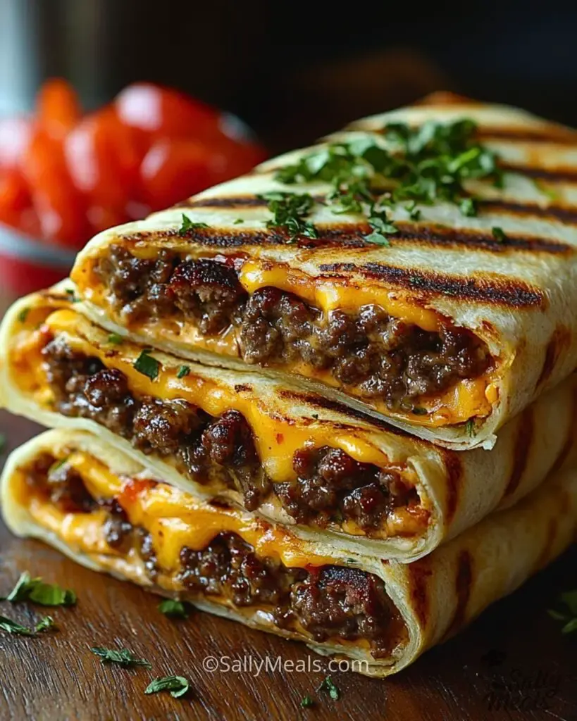 - Make it a double – Want an even meatier bite? Use extra beef and cheese but be sure not to overstuff, or the wrap may burst while grilling.