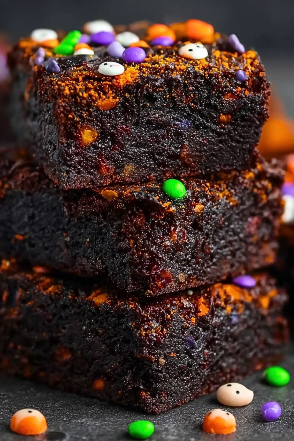 I love how easy these are to make, yet they look like you went all out. You can whip up a batch in under an hour, and the results never disappoint. Plus, you can play with toppings to suit your Halloween theme — from creepy candy eyes to ghoulish sprinkles. Every year, I look forward to the moment I cut into the cooled brownies and see the surprise of colorful candies peeking through the dense chocolate.