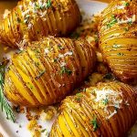 Golden, crisp-edged Hasselback Potatoes are the ultimate easy recipe to elevate your meal. Perfect as a quick side for weeknights or a star on your holiday table, these thinly sliced, roasted potatoes are buttery, garlicky, and herb-infused. This healthy snack or dinner idea offers visual flair with minimal effort. Whether you’re looking for comfort food ideas or elegant dinner ideas, this dish fits every occasion.