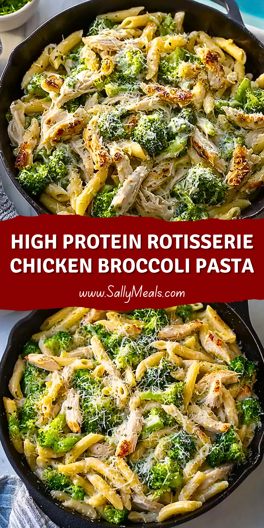 Keywords: high protein pasta, rotisserie chicken recipe, quick dinner, easy recipe, healthy dinner, broccoli pasta, creamy pasta