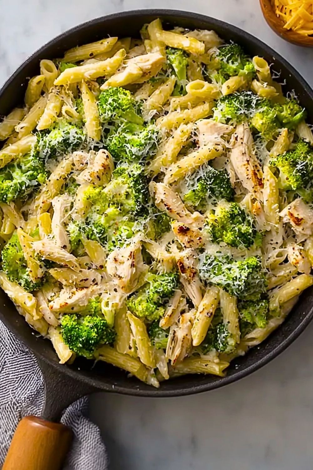 Use freshly shredded rotisserie chicken to lock in flavor and keep the texture tender. When cooking the pasta, be sure to salt the water generously — this is your only chance to season the pasta itself. Blanch the broccoli in the same water during the last 2 minutes of pasta boiling to save time and preserve nutrients. Drain everything well before combining it in the skillet with your cream sauce to avoid watering down the flavor. Lastly, stir in the cheese off the heat to keep it from clumping and ensure a velvety finish.