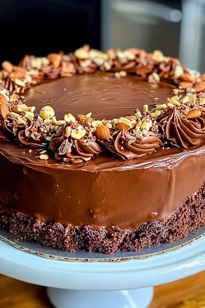Smooth, glossy, and rich—this finishes the cake and brings everything together in chocolaty harmony.