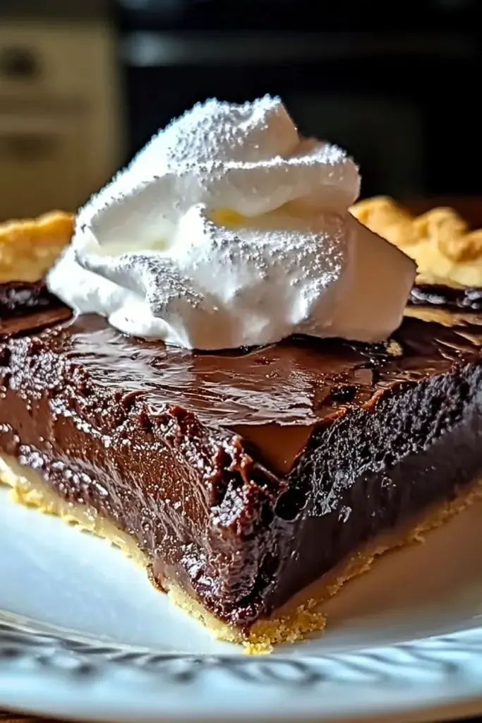 Place the pie on a cooling rack and allow it to rest for at least 15–20 minutes. Serve warm for an ooey-gooey experience, or let it cool completely for a firmer, sliceable fudge texture. Add a scoop of vanilla ice cream or whipped cream for an extra-special touch.