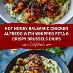 Hot Honey Balsamic Chicken Alfredo with Whipped Feta & Crispy Brussels Chips
