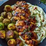 Try adding a bit of smoked paprika to the chicken glaze or tossing the Brussels sprouts with a touch of smoked salt before roasting. It will add an extra layer of complexity to the dish and give it a more earthy, smoky vibe.