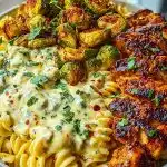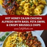 Hot Honey Cajun Chicken Alfredo with Basil Feta Swirl & Crispy Brussels Chips brings together heat, creaminess, and crunch in a way that’s both exciting and comforting. With simple steps and bold ingredients, this recipe makes an unforgettable weeknight dinner or a crowd-pleasing special occasion dish. Whether you’re craving spicy pasta, comfort food with flair, or just looking for fresh dinner ideas—you’ve found a new go-to.