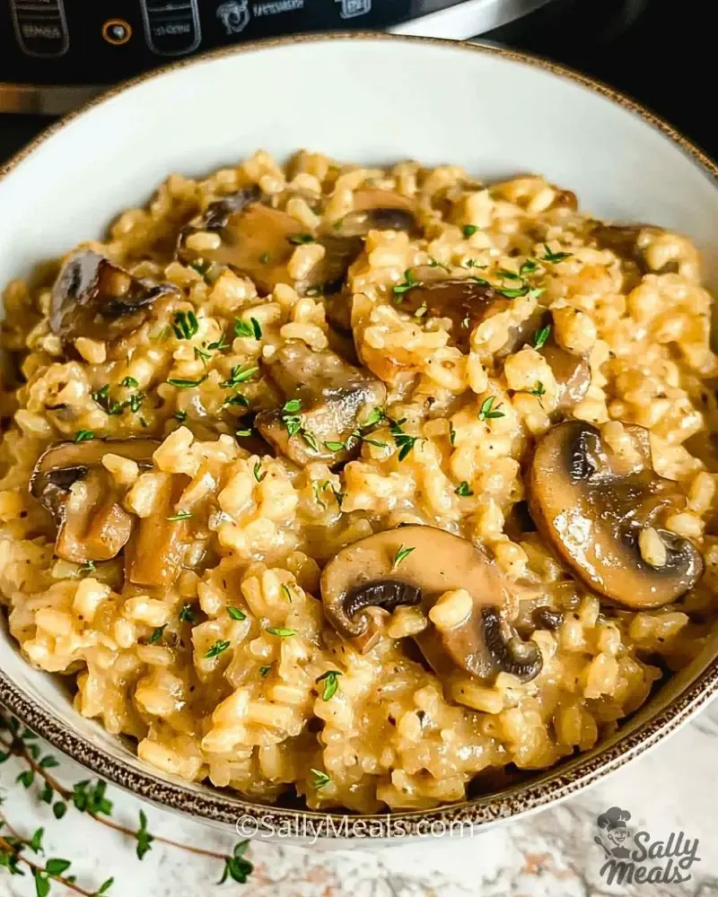 Finish the risotto with a sprinkle of fresh thyme and an extra dusting of Parmesan. Serve immediately while it's warm and creamy. Enjoy your effortless, restaurant-quality Instant Pot Mushroom Risotto!