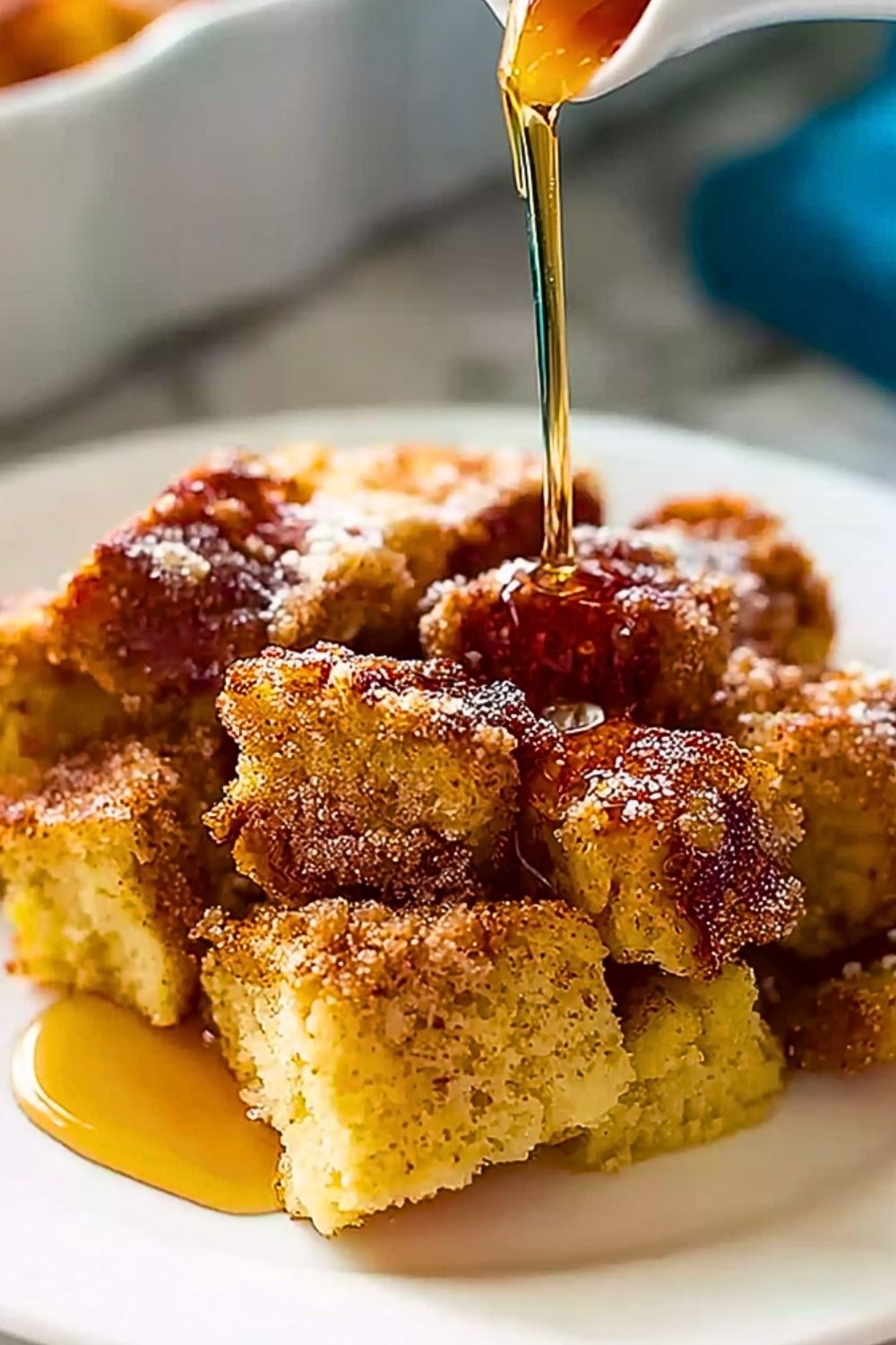 This casserole is everything: soft on the inside, golden and crispy on top, and packed with a rich cinnamon-sugar flavor that hits all the right nostalgic notes. It requires minimal morning effort, and you can easily make it ahead of time. Plus, it’s made with simple pantry staples you probably already have. Perfect for feeding a crowd or just indulging yourself with leftovers throughout the week.