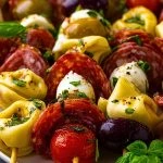 Italian Antipasto Skewers with Marinated Tortellini and Mozzarella are the kind of recipe that makes entertaining easy, colorful, and flavorful. With bold Italian ingredients, minimal cooking, and complete flexibility, they’re ideal for everything from dinner parties to casual snacks. I love how they look on a platter — vibrant, rustic, and inviting — and how every bite offers something different.