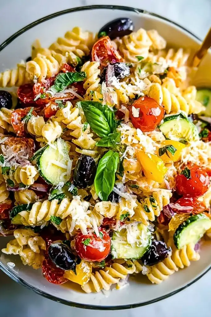 A colorful and refreshing Italian Pasta Salad Dressing that brings together rotini pasta, fresh vegetables, and creamy mozzarella, all tossed in a zesty homemade Italian dressing. Perfect for potlucks, picnics, or a light family meal, this salad is full of Mediterranean flavor and texture.