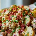 What really sets this dish apart is its contrast of textures and flavors. The smoothness of the creamy dressing, the subtle snap of red onions, the richness of bacon, and the bright burst of fresh chives make every forkful dynamic. It's comfort food with an attitude, satisfying yet exciting—a guaranteed crowd-pleaser that tastes just as good as it looks.