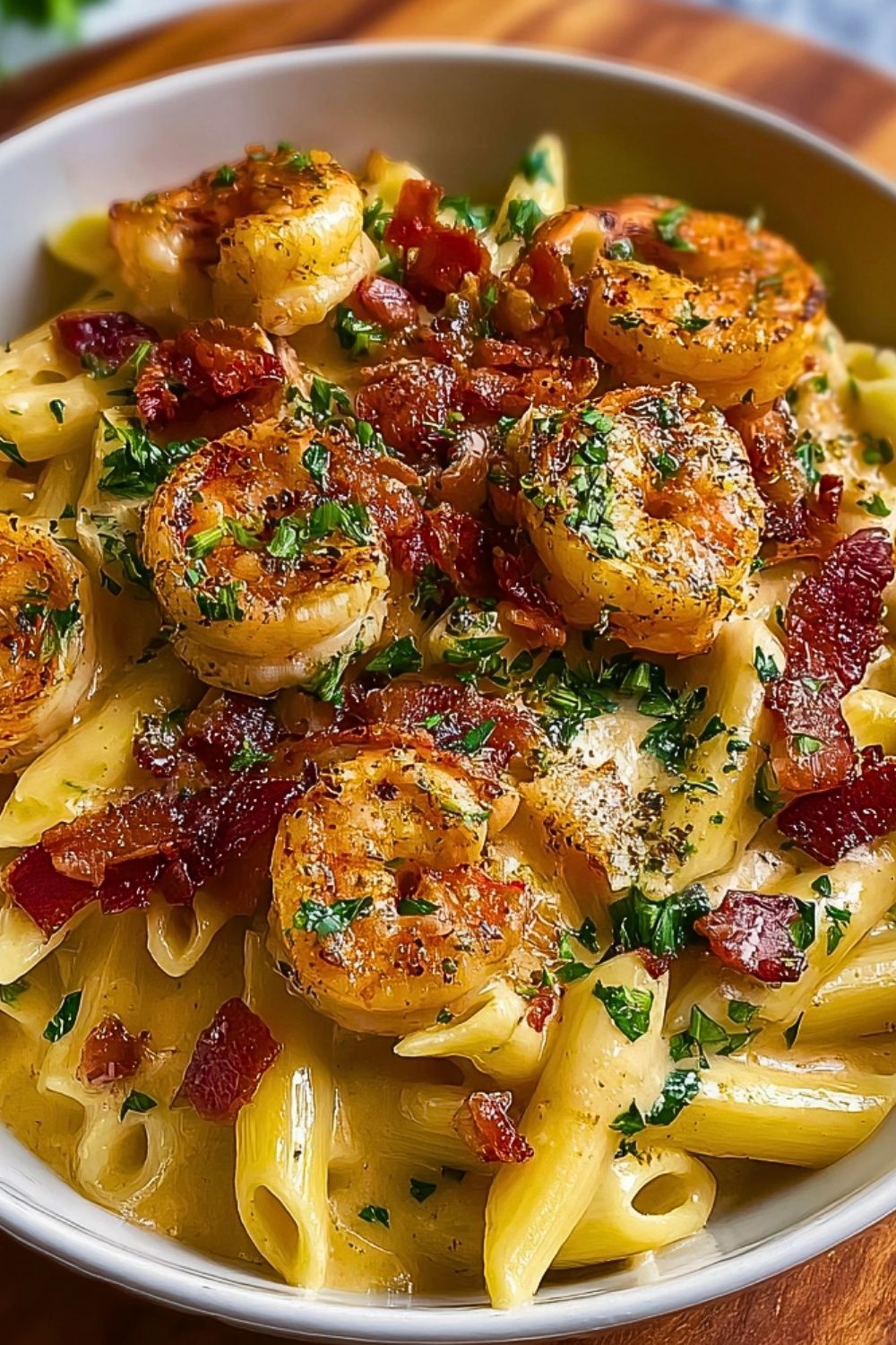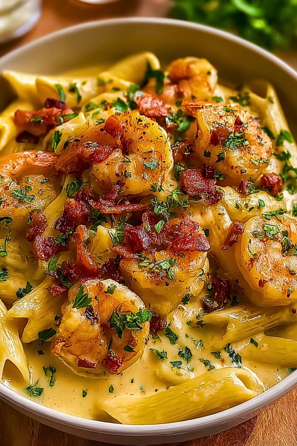 It checks all the boxes: creamy, savory, and indulgent with just the right amount of garlic and heat. The shrimp adds a satisfying protein punch, while the crispy bacon bits and fresh herbs take it over the top. This is comfort food that feels a little fancy — perfect for date nights, dinner parties, or even weeknight cravings.