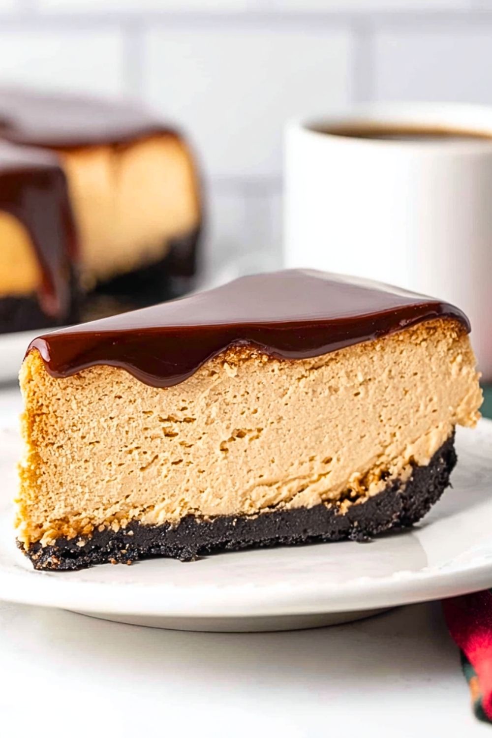 Oreo cookie crust is my go-to for this cheesecake. The deep cocoa flavor pairs beautifully with the coffee liqueur in the filling and adds a bit of crunch to contrast the creamy texture. You can also try a chocolate graham cracker crust if you’re looking for a slightly lighter touch.