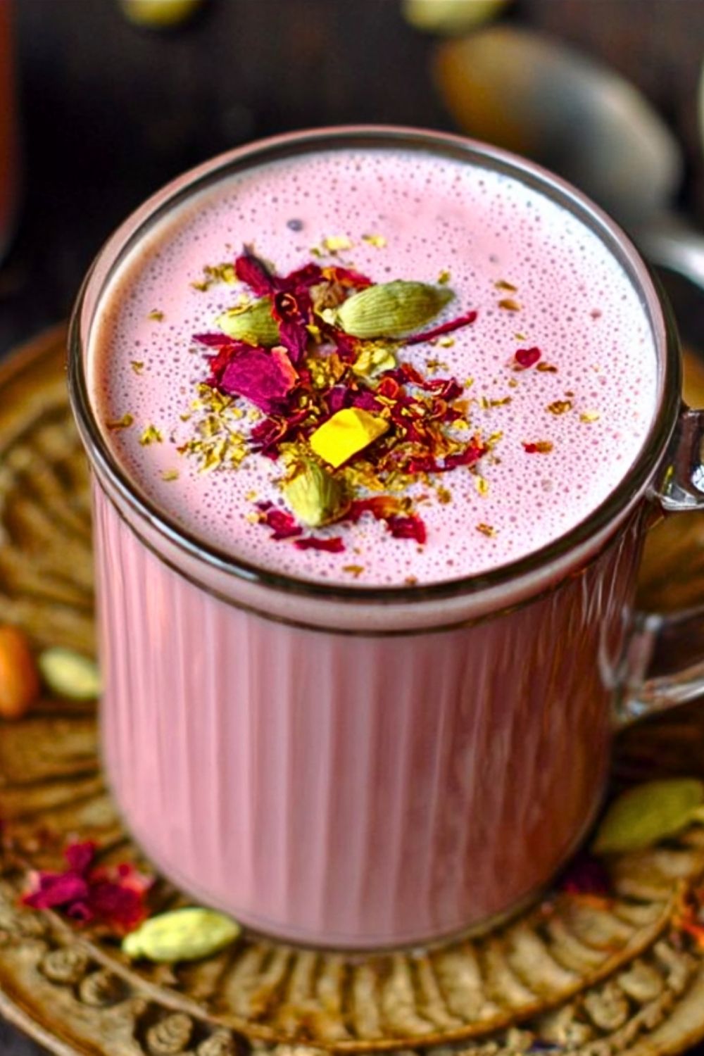 Kashmiri Pink Chai is best enjoyed steaming hot, sipped slowly while wrapped in a cozy blanket or served to guests with a side of warm snacks.
