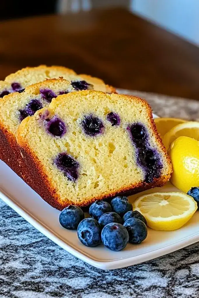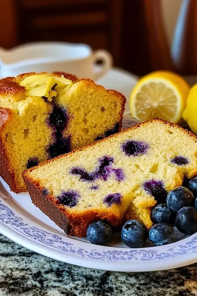 The Lemon Blueberry Loaf typically takes about 50 to 60 minutes in a 350°F (175°C) oven. You’ll know it’s ready when the top is golden brown and a toothpick inserted into the center comes out clean or with just a few moist crumbs. Be careful not to overbake — that’s the quickest way to dry out your beautiful loaf. If the top starts browning too quickly, loosely tent it with foil for the last 10–15 minutes.