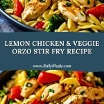 Ready in under 40 minutes, this Lemon Chicken & Veggie Orzo Stir Fry is the ultimate solution for quick dinner ideas that don't skimp on flavor or nutrition. A zesty, savory combination of golden seared chicken, vibrant vegetables, and tender orzo pasta, all tossed in a bright lemony sauce—this easy dinner recipe is a one-pan wonder. Ideal for healthy snacks, quick lunches, or light yet hearty dinner ideas, it’s a wholesome meal with a Mediterranean twist. With its colorful presentation and comforting aroma, this dish turns weeknight cooking into something special. Whether you're after an easy recipe, family food ideas, or light meal prep inspiration, this stir fry checks every box.