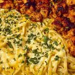 Lemon Garlic Butter Chicken Bites with Savory Parmesan Linguine