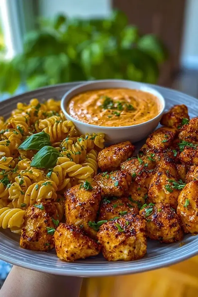 Why You’ll Love This Lemon Pepper Chicken Bites & Roasted Red Pepper Cajun Alfredo Twists