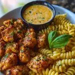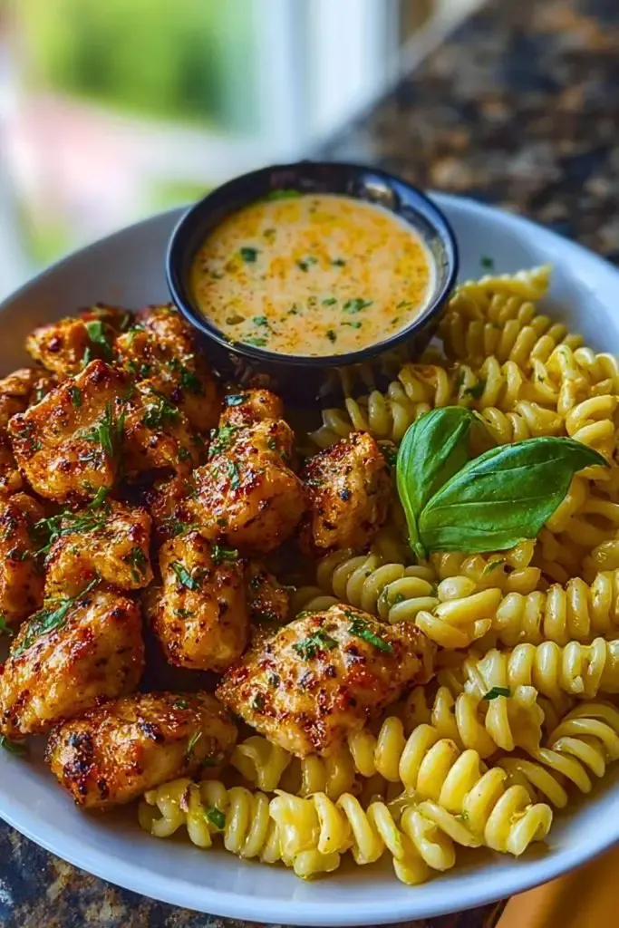 Toss the cooked pasta into the sauce and stir gently to coat. Serve pasta alongside or beneath the lemon pepper chicken bites. Garnish with fresh parsley and basil. Serve hot and enjoy every flavorful bite.