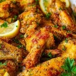Plate the wings with a sprinkle of fresh parsley and lemon slices on the side for extra visual appeal and a squeeze of added brightness, if desired.