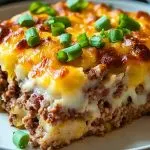 What makes this dish a weeknight hero is its one-pan convenience combined with rich, savory flavors and textures. The juicy, tender meatloaf base is topped with velvety mashed potatoes, crowned with gooey melted cheese, crispy bacon, and a sprinkle of green onions for freshness. It’s warm, hearty, and satisfying—a soul-hugging dinner that disappears fast at the dinner table.
