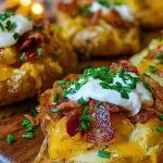 Loaded Smashed Potatoes are the ultimate comfort food—crispy, cheesy, and packed with flavor in every bite. Each potato is smashed just enough to create craggy edges that crisp up beautifully in the oven. They’re topped generously with melted cheddar cheese, crispy bacon pieces, a dollop of sour cream, and a sprinkle of fresh green onions for that final punch. It’s everything you love about a baked potato but with extra crunch and indulgence.