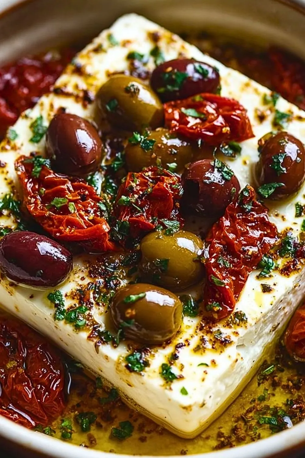 Mediterranean Baked Feta with Olives & Sun-Dried Tomatoes