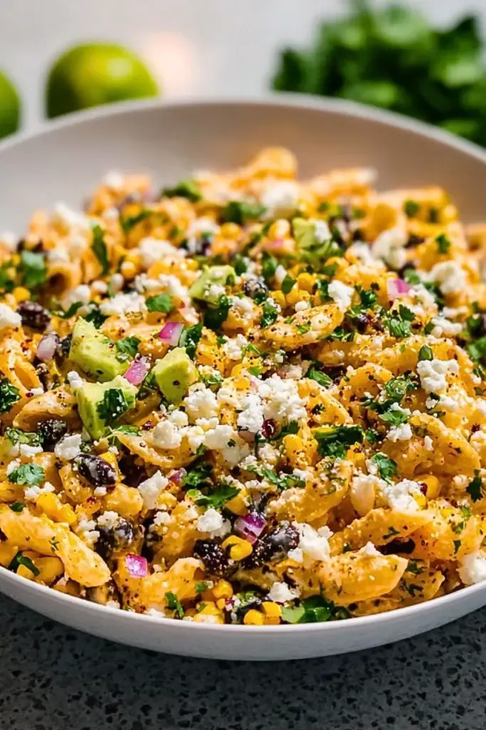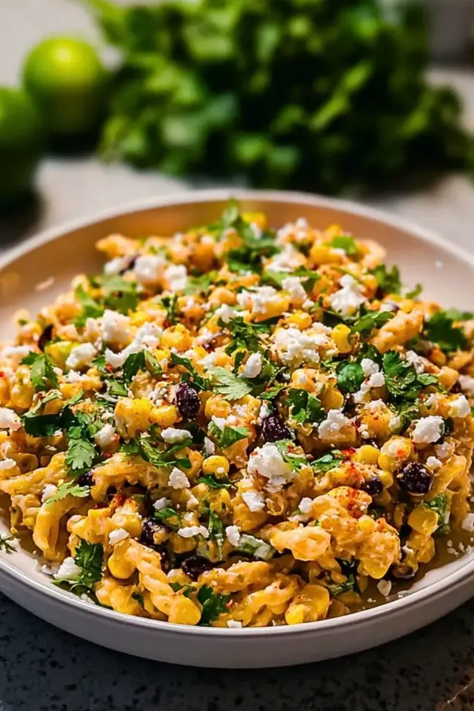Keywords: Mexican Street Corn Pasta, elote pasta salad, creamy corn pasta
