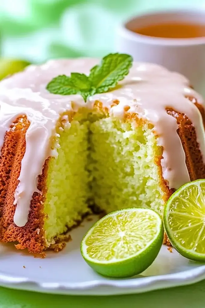 The vibrant green hue hints at the fresh lime juice inside, and the dense texture typical of pound cakes gives it a satisfying bite without being heavy. Paired with a cup of tea or enjoyed as a dessert centerpiece, this cake hits that perfect balance between rustic comfort and show-stopping beauty.