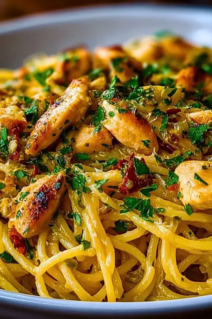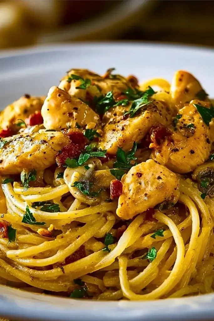 Golden seared chicken, tender spaghetti, and a rich garlic butter sauce come together in this Monterey Chicken Spaghetti—an indulgent, savory dinner that tastes like a restaurant-quality meal but is easy enough for weeknights. The dish is bursting with flavor, thanks to seasoned chicken breast, smoky Monterey Jack cheese, and a sprinkle of fresh herbs that tie everything together.