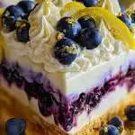 To keep your No-Bake Lemon Dazzling Blueberry Cream Cake fresh and firm, store it tightly covered in the refrigerator. It will hold up well for 3 to 4 days, although it’s best enjoyed within the first two days when the layers are at their most vibrant and the crust is still crisp. If you need to make it ahead, you can prepare all the layers the night before and add the whipped topping and garnish just before serving.