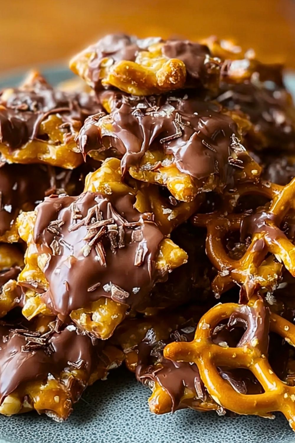 Yes, and here’s the fun part: mini twists, pretzel sticks, pretzel snaps—they all work! I usually go for mini twists because they hold the clusters well and give that classic shape. Thicker pretzels will add more crunch, while smaller ones blend more into the peanut butter-caramel mixture. If you want a more even, bark-like texture, pretzel sticks snapped in half are a great option too. Just avoid any that are heavily salted or seasoned since you’re adding your own toppings.