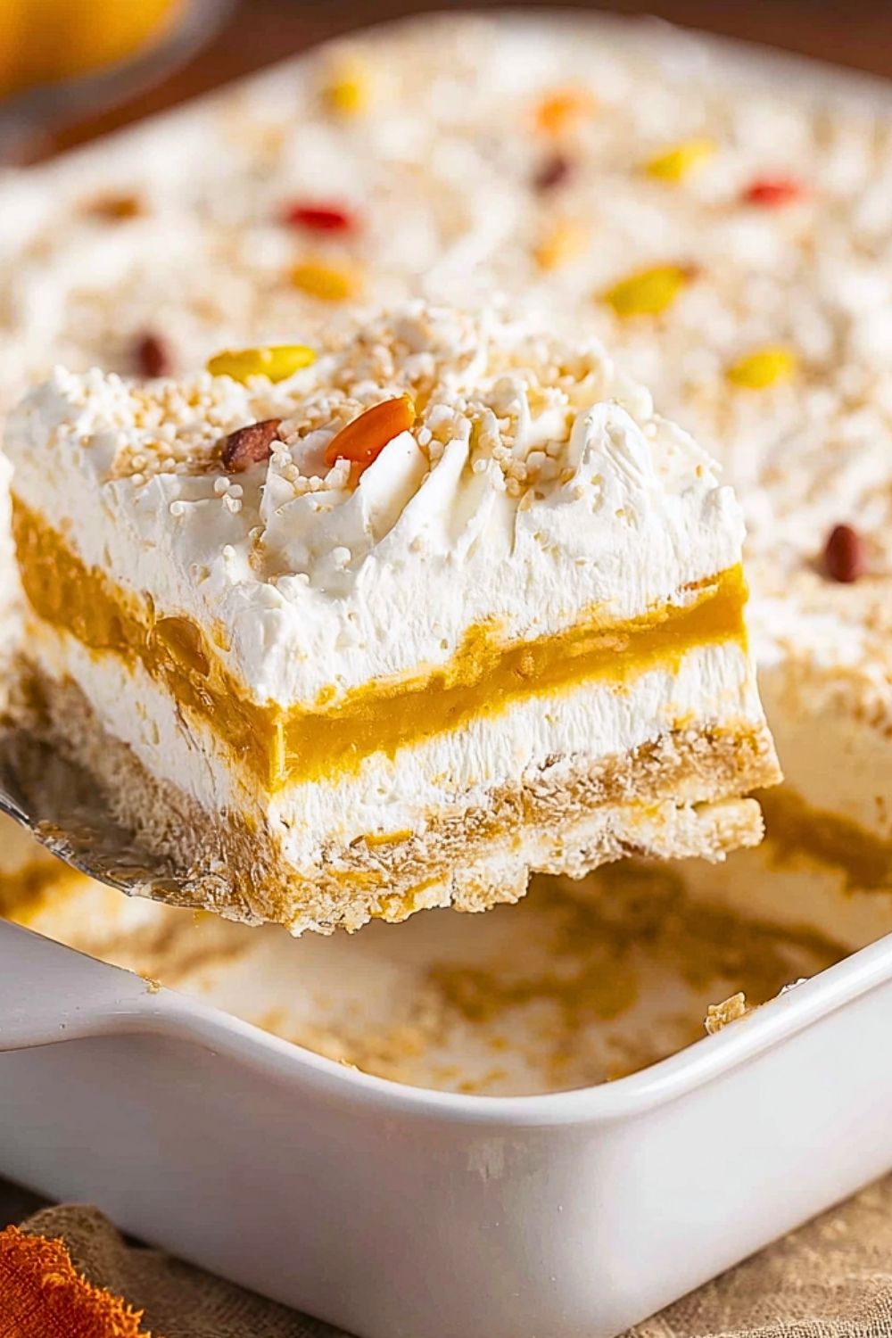 Keywords: pumpkin dessert, no bake lasagna, easy holiday dessert, fall dessert idea, layered dessert