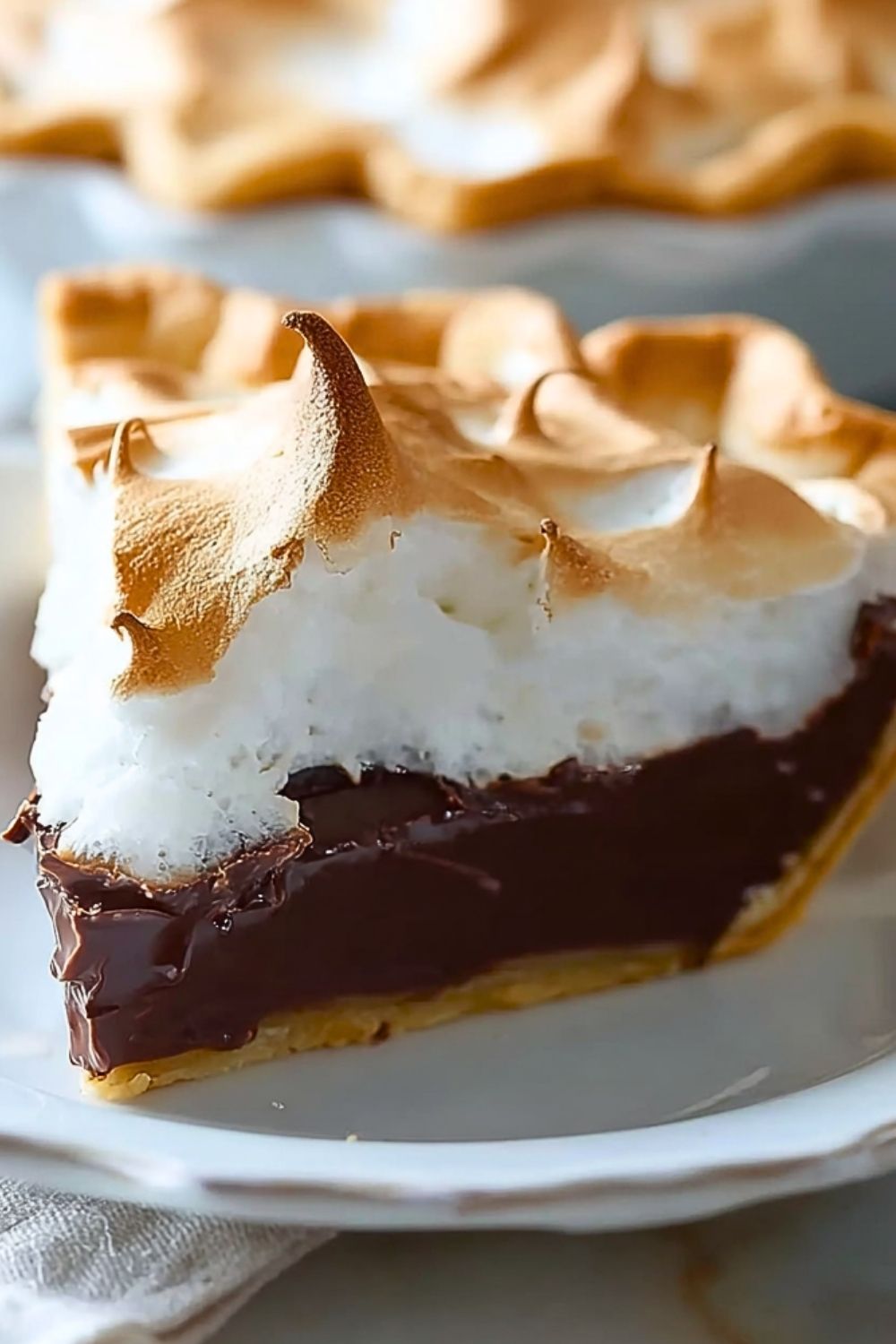 Keywords: chocolate pie, meringue pie, old-fashioned dessert, easy recipe, classic pie
