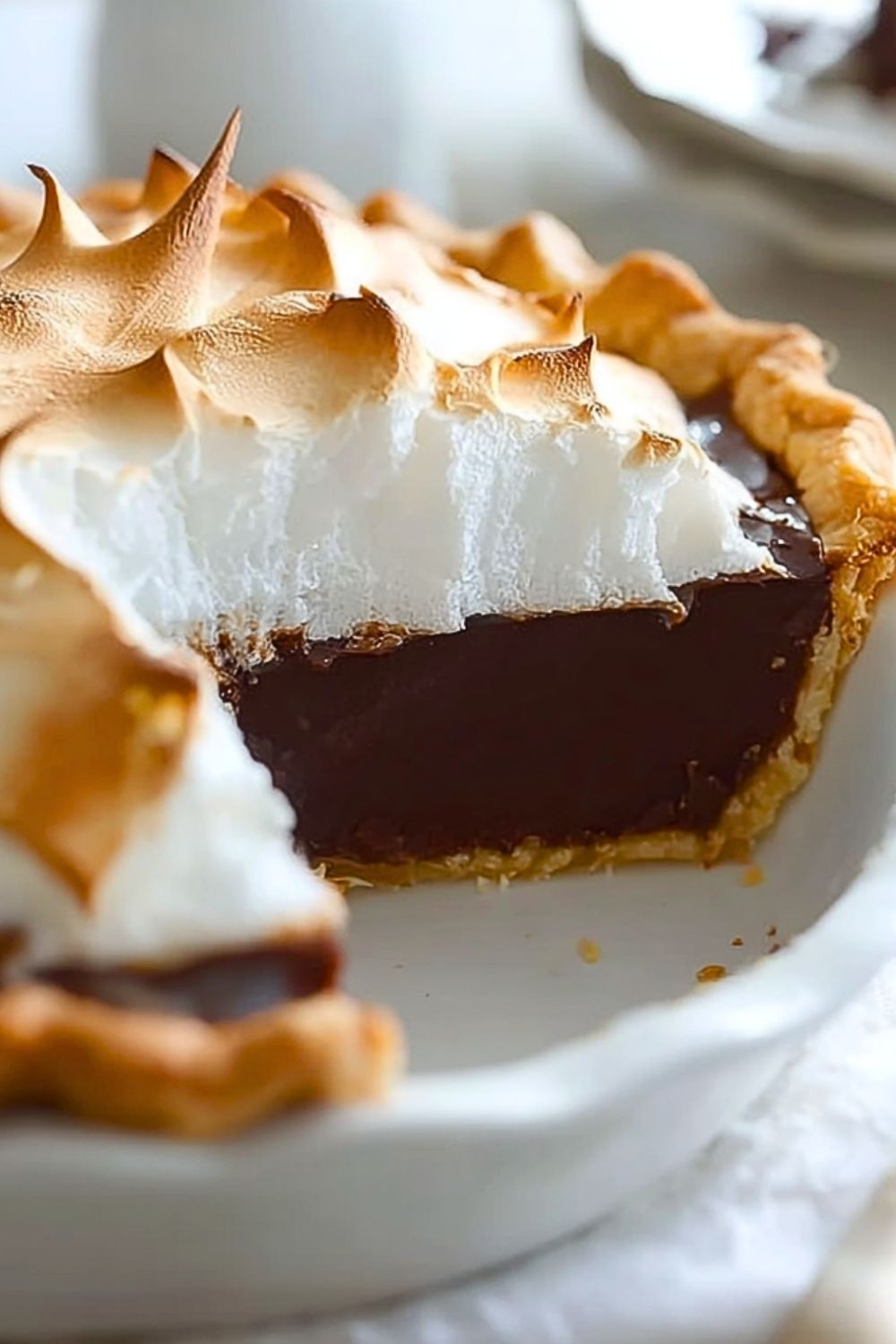 The pie’s charm lies not only in its flavor but also in the memory it evokes—perhaps of grandma’s kitchen or community potlucks. The silky pudding-like center contrasts with the crisp crust and the light-as-air meringue, making it both indulgent and balanced. If you’re craving comfort food with a touch of elegance, this chocolate meringue pie delivers.