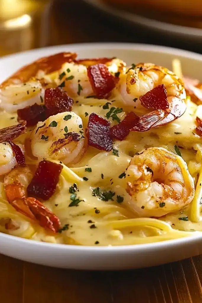 This version is not only a fan-favorite from the Olive Garden menu, but also a perfect go-to for when you're craving something indulgent yet satisfying. Whether you're hosting guests or just treating yourself, the combination of textures and flavors — crispy pancetta, creamy sauce, succulent shrimp, and tender chicken — makes this dish an unforgettable dining experience.