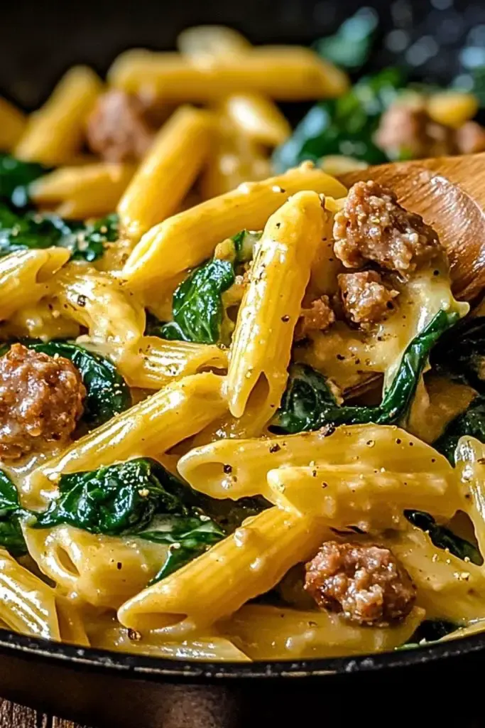 The combination of rich, savory Italian sausage, tender penne pasta, and vibrant spinach all enveloped in a luscious creamy sauce is simply irresistible. The flavors marry beautifully, giving you a dish that tastes like it took much more effort than it actually did. Whether I’m cooking for myself, family, or friends, this recipe never fails to please.