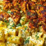 Juicy, seared-to-perfection steak bites meet creamy, garlicky, cheesy noodles in this ultimate comfort food combo. Each tender cube of beef is pan-seared for a beautifully caramelized crust, then paired with rich, cheesy rotini tossed in a buttery garlic sauce that clings to every twist of the pasta. This dish looks gourmet, tastes indulgent, and yet it all comes together in just one pan—making cleanup nearly as satisfying as the meal itself.