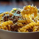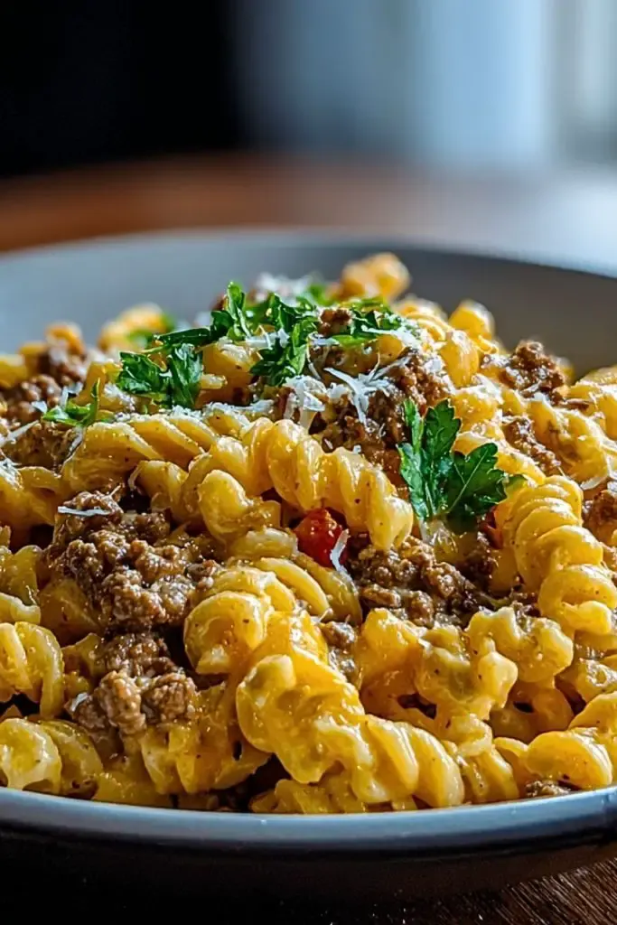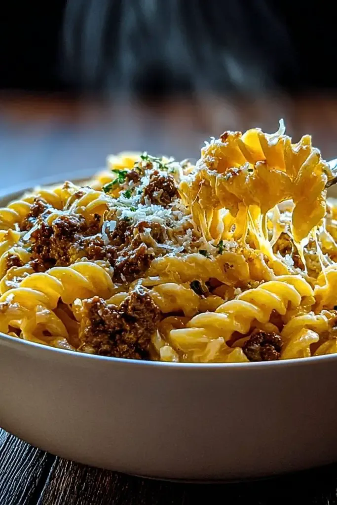 A creamy, cheesy one-pot pasta dish made with ground beef, ranch seasoning, and sharp cheddar. Perfect for quick weeknight dinners with minimal cleanup and maximum flavor.