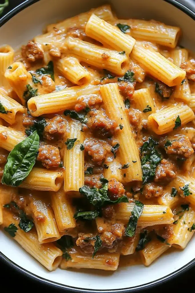 Get ready to fall in love with this hearty and flavorful One-Pot Creamy Sausage Rigatoni — a rich and satisfying pasta dish perfect for weeknight dinners or cozy weekends. With bold Italian sausage, a velvety tomato-cream sauce, and ridged rigatoni that captures every bit of flavor, this quick dinner is a true comfort food hero. It’s an easy recipe with minimal cleanup, ideal for busy nights when you want something delicious without the stress. Whether you're hunting for dinner ideas, quick meals, or just a warm bowl of comfort food, this dish delivers every time.