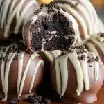These Oreo Truffles are decadent, bite-sized treats made with crushed Oreo cookies and cream cheese, coated in smooth chocolate and topped with a touch of flair. No baking required, and each bite delivers rich flavor with a creamy center and satisfying chocolate shell.