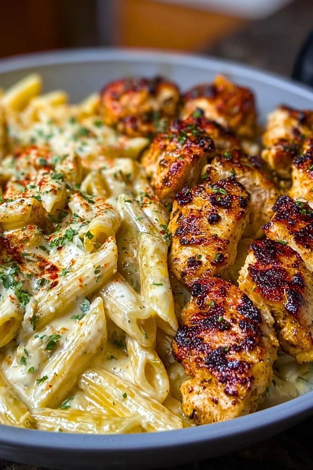 Creamy Velveeta Chicken Rigatoni with Mozzarella Garlic Sauce