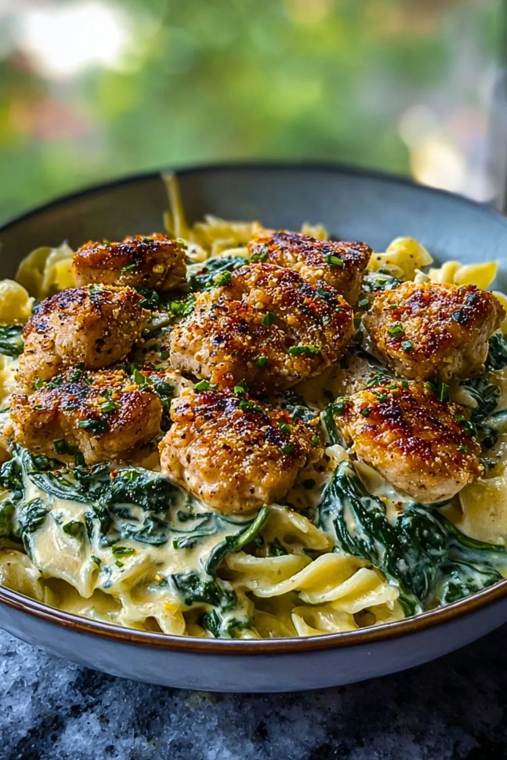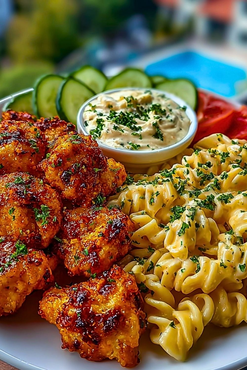 Golden, crispy garlic chicken bites nestled on top of a rich, creamy Cajun Alfredo pasta—this dish is indulgence done right. The tender chicken, with its …