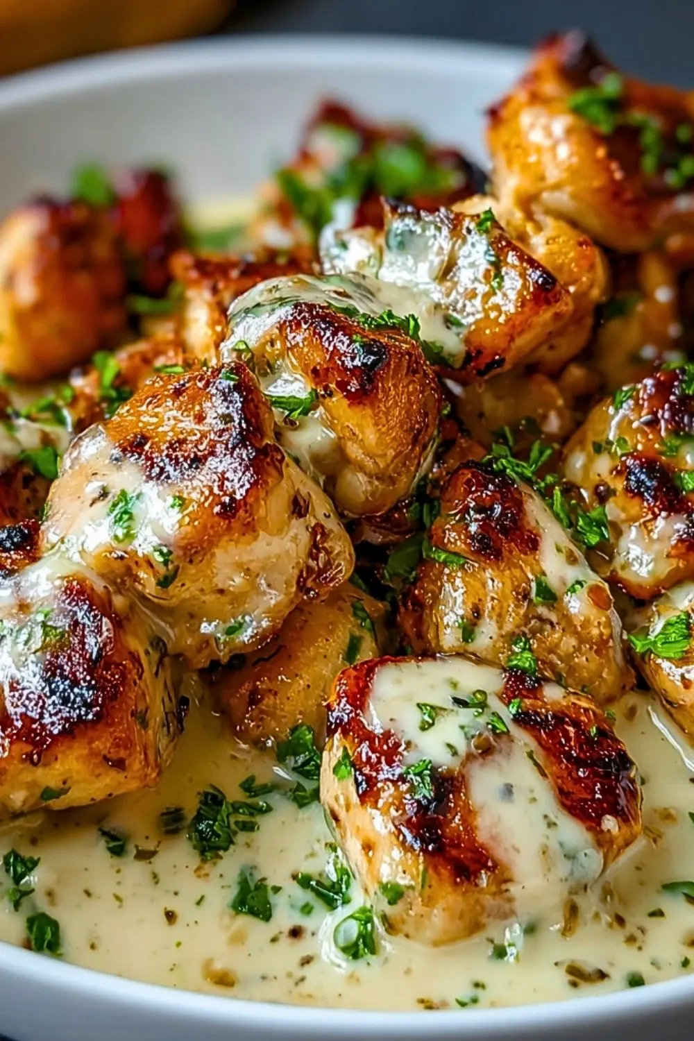 Juicy grilled chicken bites slathered in a silky, buttery garlic cream sauce—this dish is the perfect combination of smoky, savory, and indulgently creamy. Each piece …