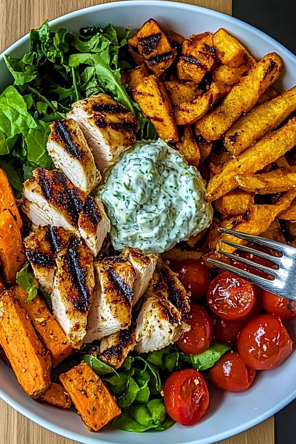 A colorful, nutritious dish that delivers both flavor and balance, the Grilled Chicken Power Bowl with Tzatziki and Sweet Potato Fries is a feast for …